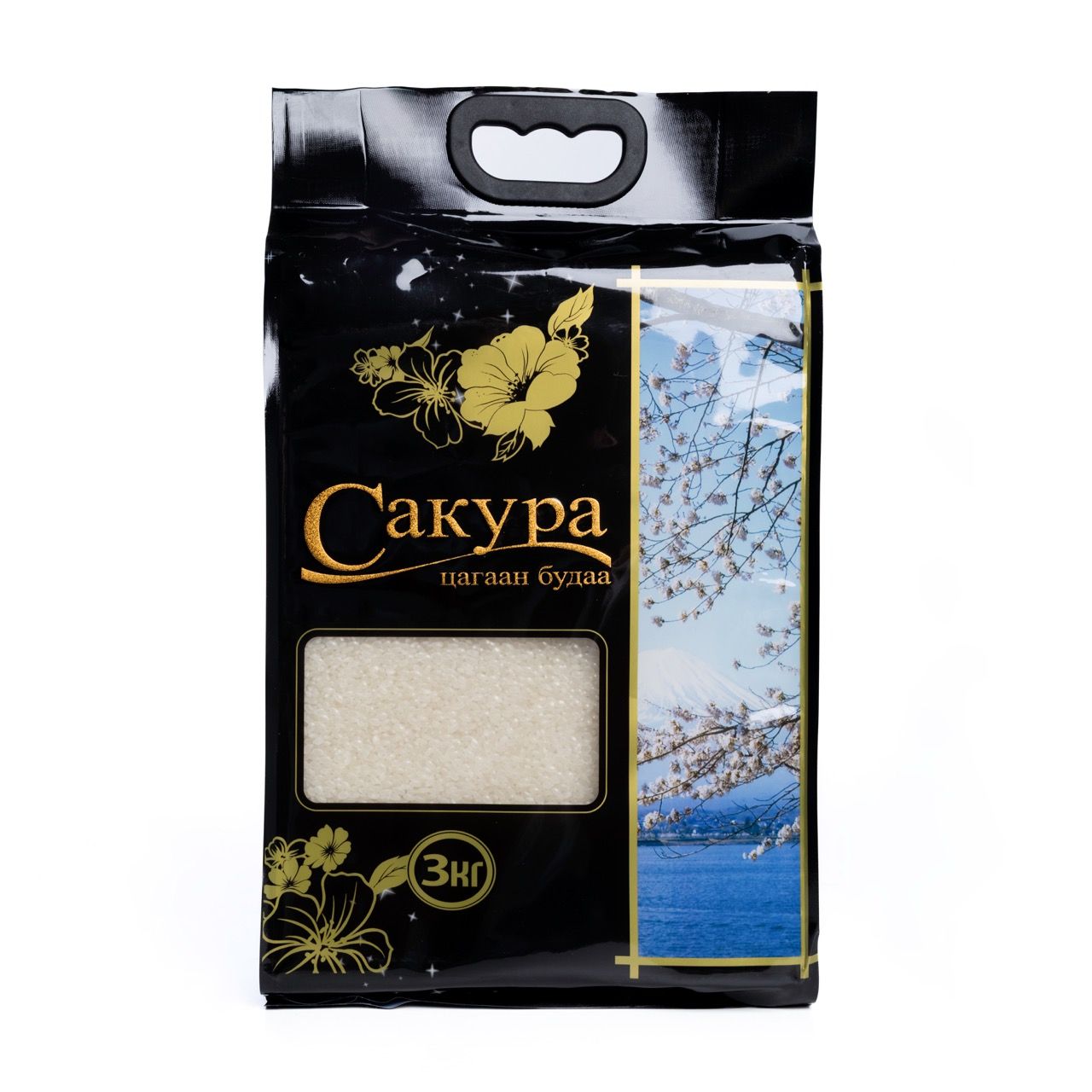 White rice in a black bag